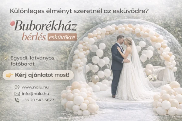 Az egyik legnépszerűbb újdonság: a Bubble House, azaz a felfújható Buborékház! Tökéletes választás szülinapokra, esküvőkre, rendezvényekre, fotózásokhoz vagy bármilyen eseményhez, ahol valami igazán egyedit szeretnél. Ha buborékház bérlés a cél, nálunk jó helyen jársz.