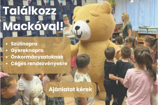 Egy hatalmas, aranyos maci minden gyerek álma! A jelmezes maci bérlés tökéletes választás, ha szeretnéd feldobni a bulit vagy meglepni az ünnepeltet. Kiváló kiegészítő gyerek zsúrokra, fotókhoz és különleges pillanatokhoz.
