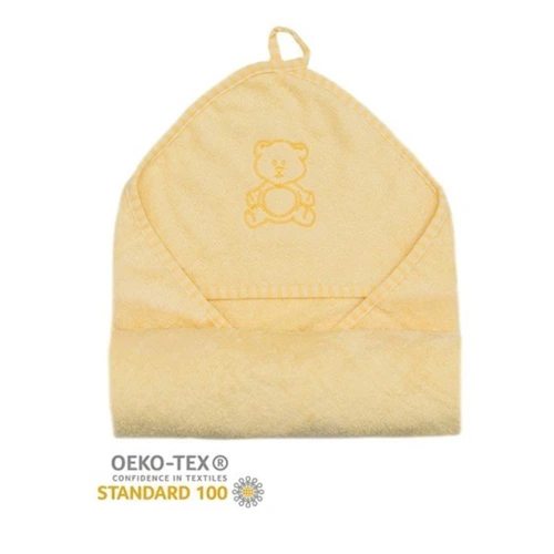 Gyerek törölköző képpel és kapucnival. Kellemes és puha anyagból gyártott. Belső oldala pamut, külső oldala fleec. Mérete: kb 100x100 cm. Anyaga: 100% pamut.
