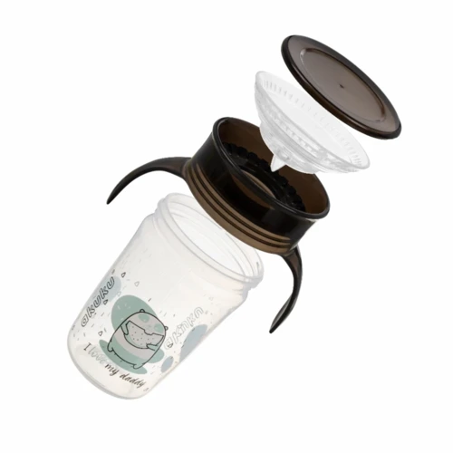 A 360˚-os kiömlésmentes itatópoharat úgy tervezték, hogy a gyermek mielőbb megtanuljon inni. A folyadék kiömlésének megakadályozása érdekében tömítőszeleppel van felszerelve. A szájrész lehetővé teszi, hogy annak bármely részéről ihasson a gyermek. A kényelmes és széles fogantyúk és az ergonomikus forma megkönnyíti a pohár kézben tartását. A kupak véd a szennyeződésektől. Könnyû és gyors mosás. Mosogatógépben mosható.