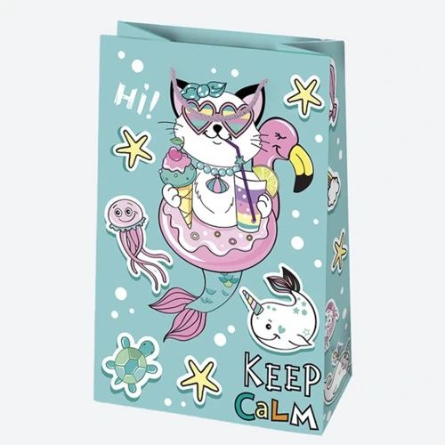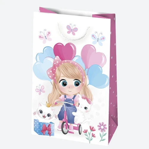Állatos, Cutie csajos papír ajándéktasak, ajándékzacskó 16x24x7 cm