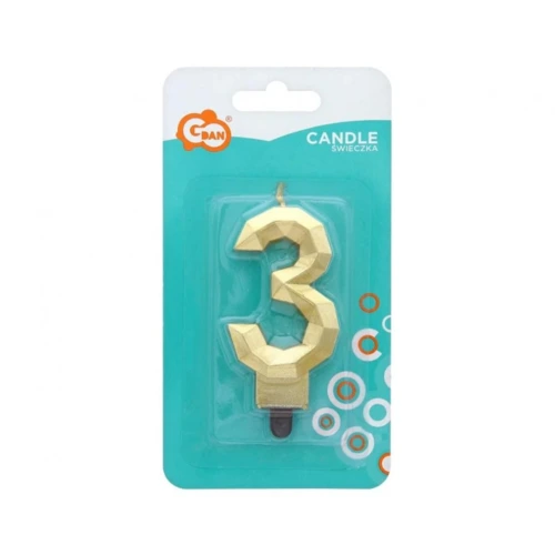 Arany 3-as Diamond Metallic számgyertya, tortagyertya