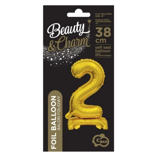 Arany B&C Gold mini 2-es szám fólia lufi talppal 38 cm