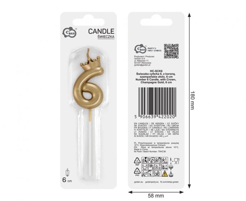 Gold, Arany 6-os számgyertya, tortagyertya
