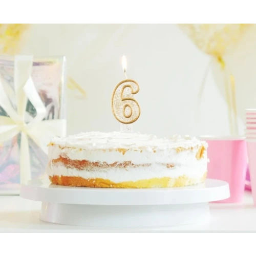 Arany csillámos 6-os Gold számgyertya, tortagyertya