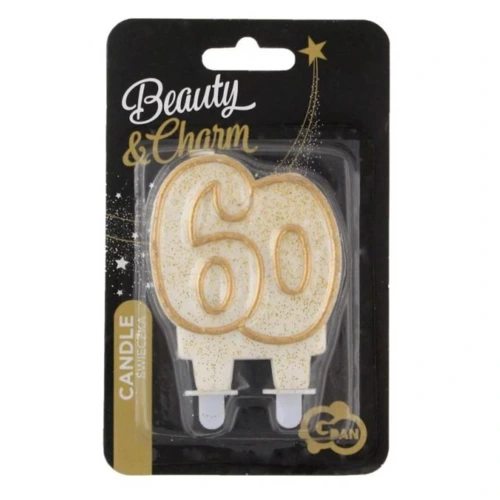 Arany csillámos 60-as Gold tortagyertya, számgyertya