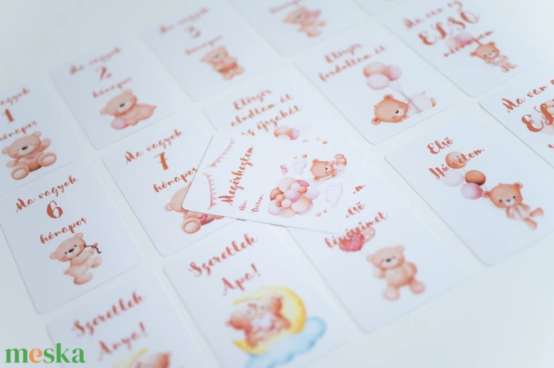 Baba mérföldkő kártya szett – Emlékezetes pillanatok örök emlékbe Legyen szó ajándékozásról vagy saját emlékek gyűjtéséről, ez a mérföldkő csomag biztosan szívet melengető gesztus lesz. Örökítsétek meg a legédesebb pillanatokat hónapról hónapra – mert minden mosoly, minden kis fejlődés egy csoda!