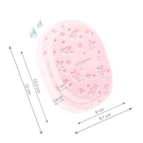 A BabyOno fürdető szivacs latexmentes, hipoallergén, puha és finom tapintású. Tökéletes és biztonságos a baba érzékeny bőrének.