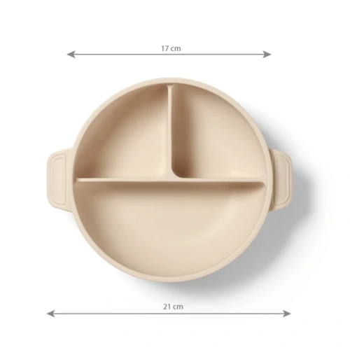 Az erős tapadókorong szilárdan a helyén tartja a szilikon tányért, míg a lekerekített szélek megkönnyítik az étel kikaparását. A három rekesznek köszönhetően külön tálalhatod az ételféleségeket, így a baba minden finomságot külön-külön megkóstolhat.