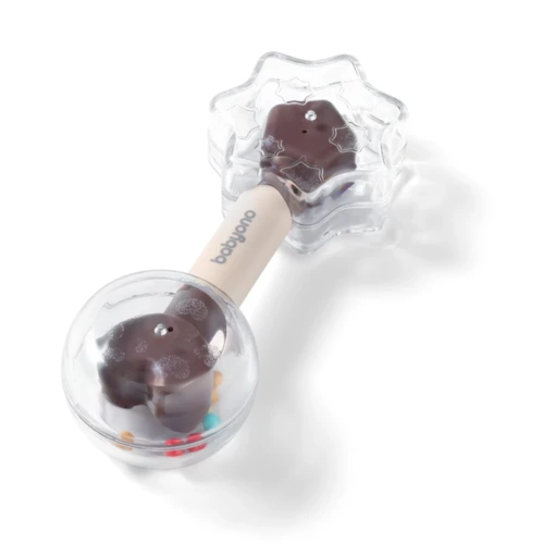 A csörgő mozgatása támogatja a baba motoros készségeit, és segíti a tárgyak megfogását és kezelését.