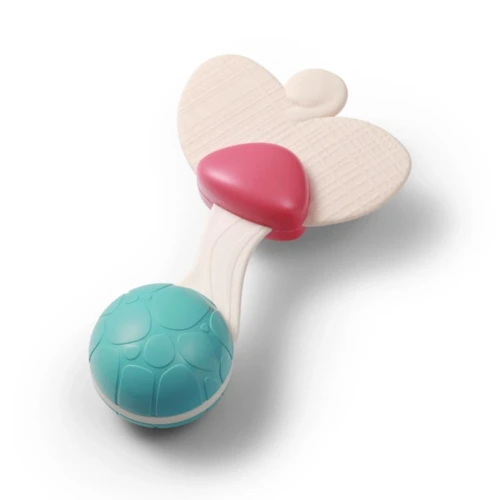 A csörgő a játék belsejében van elrejtve. Kellemes és csendes hangzást biztosít. Finom hangú – nem fogja felébreszteni az alvó babát.