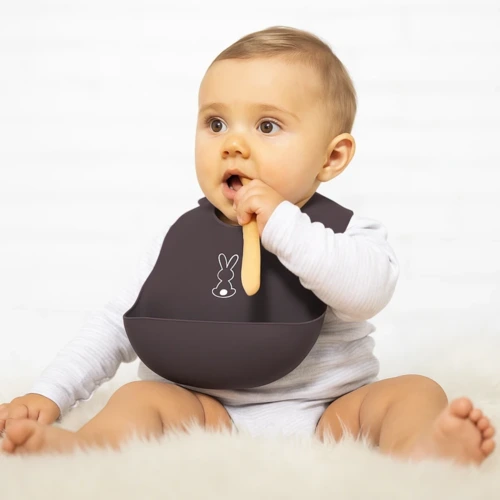 Praktikus zsebbel, amely megakadályozza, hogy a nagyobb darab meg nem evett vagy kiköpött étel leessen. Megvédi gyermeked ruháit a szennyeződéstől.