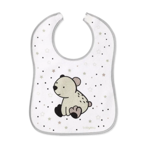 Kiváló minőségû, 100% pamut frottír anyag. A vízálló réteg védi a ruhát a szennyeződéstől és a nedvességtől. Kényelmes és praktikus tépőzáras rögzítés.
