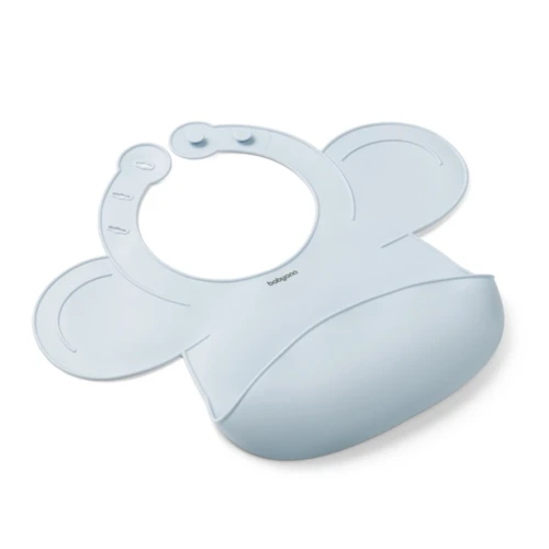 A szilikon előke tökéletesen beállítható, illeszkedik a baba testéhez, kényelmet biztosítva.