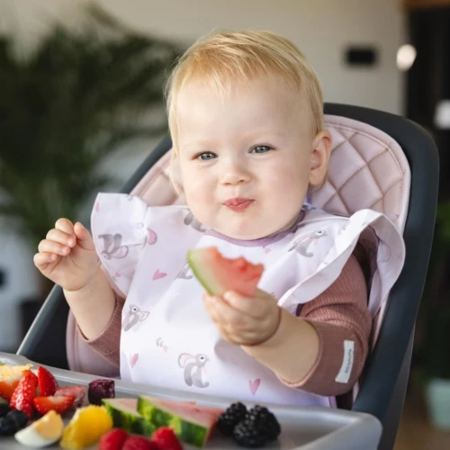 Mivel a kötényke vízálló és könnyen tisztítható, használható, amíg a baba önállóan tanul enni.