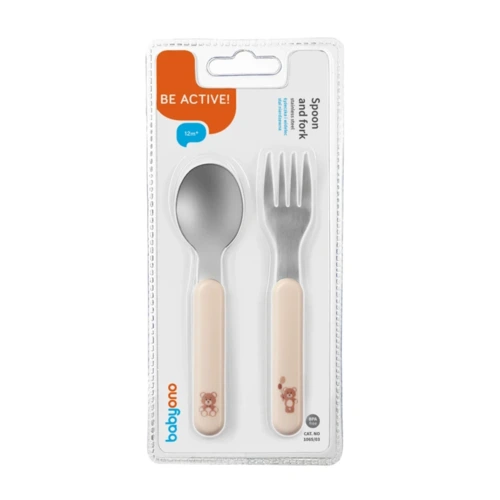 BabyOno evőeszköz-készlet rozsdamentes acél bézs maci 1065/03