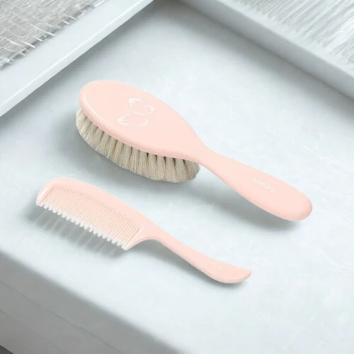 BabyOno fésű-kefe szett szuperpuha természetes sörtékkel. Antisztatikus, kíméletes hajápolás, lekerekített fésűfogakkal a baba érzékeny fejbőrének védelmére.