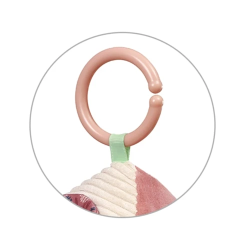 Plüss kockánk praktikus akasztóval van ellátva. Könnyen rögzíthető kiságyra, babakocsira vagy autósülésre. Gyermeked otthon, séta és utazás közben is játszhat vele.