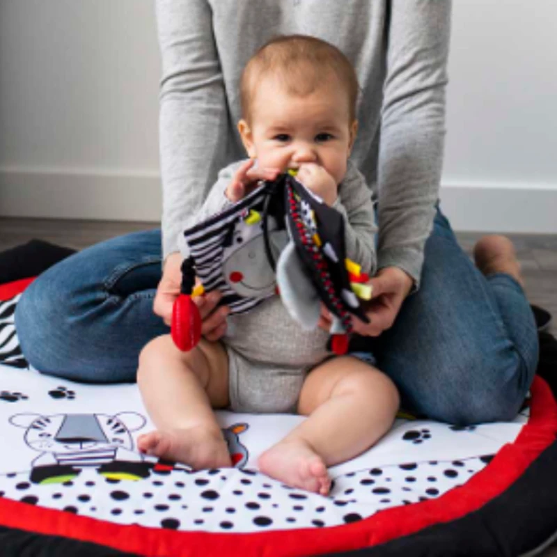 A kontrasztos színezetû játékok kiváló fejlesztőeszközök a baba látásfejlődésének támogatásához.