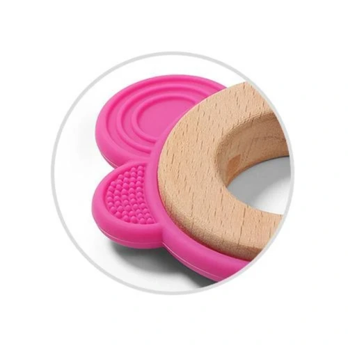 A fa és szilikon rágóka nemcsak alapfeladatát látja el, azaz megkönnyebbülést ad a fogzás során, hanem változatos szenzoros stimulációt is biztosít a biztonságos szilikon és bükkfa kombinációjának köszönhetően. A játék vonzó motívumú. A rágóka felületét alkotó számos elem további előnyökkel jár a baba számára. A kitüremkedés garantálja az érzékszervi stimulációt, segít a babának megragadni a terméket, és lehetővé teszi a fogászati gél felvitelét az ínyre.