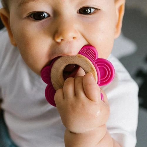 Kényelmes és puha A Babyono fa és szilikon rágókát a gyermek kis tenyerére tervezték.