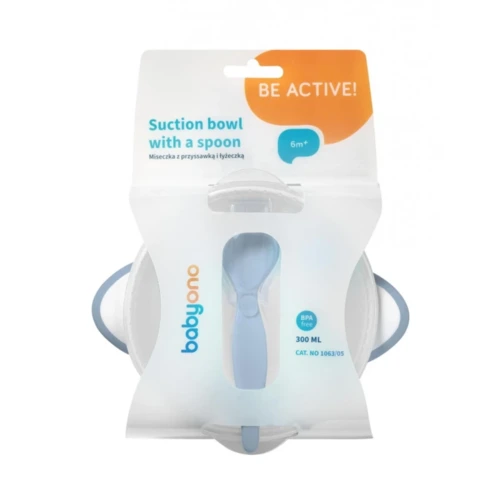BabyOno tányér - tapadó aljú, fedeles, kanállal kék 1063/05