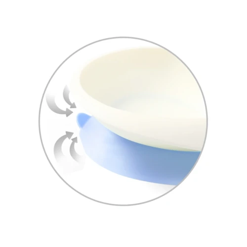 A tapadókorongos tálka különösen hasznos, mert megtanítja gyermekét segítség nélkül enni. A tál ovális formája megkönnyíti az étel kanállal történő felvételét. A gumi tapadókorong megakadályozza, hogy a tál elmozduljon az asztalon (vagy más sima felületen). A termék biztonságos, 100%-ban BPA-mentes anyagból készült.