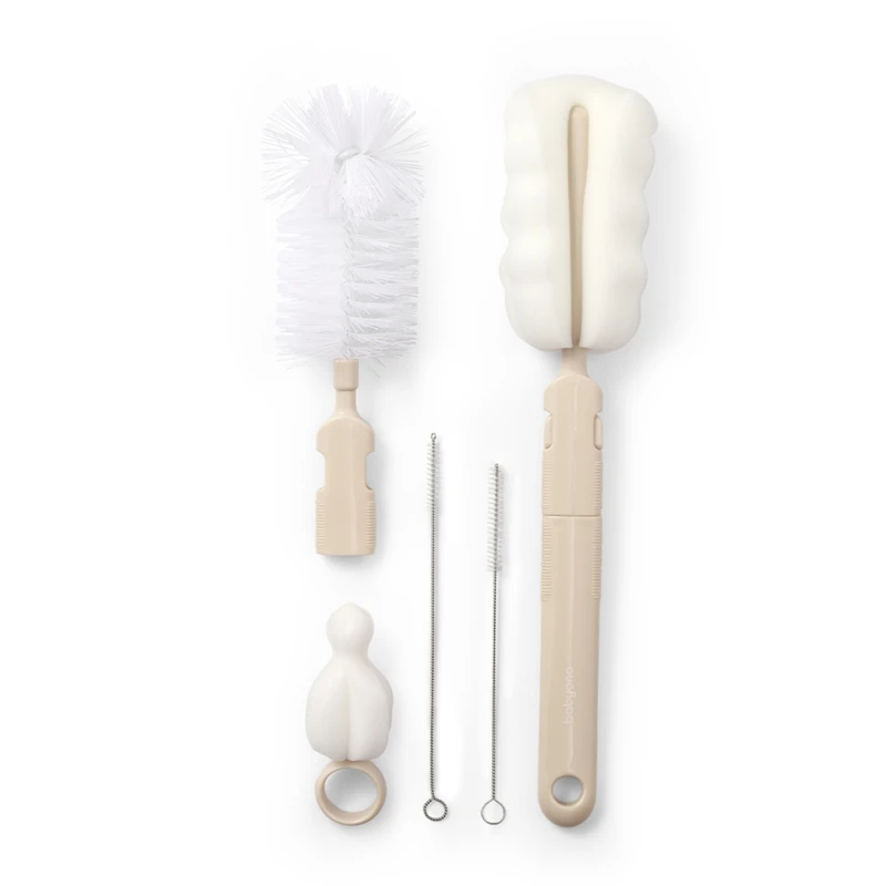 A cumi- és üvegmosó kefék szettje segít a cumisüvegek és cumik alapos tisztításában. A szett két cserélhető véggel rendelkezik a palack tisztításához, az egyik puha sörtés kefével, a másik pedig rugalmas szivaccsal.