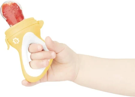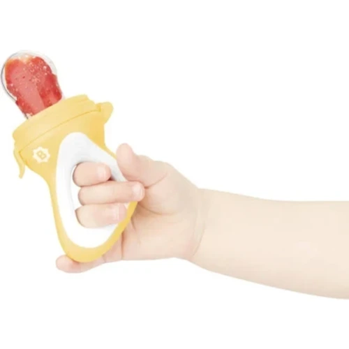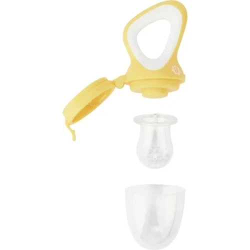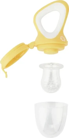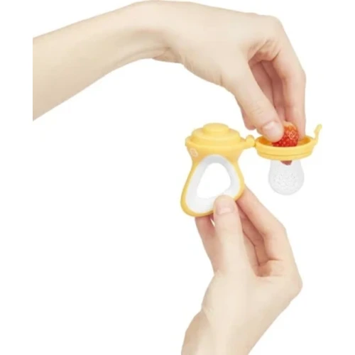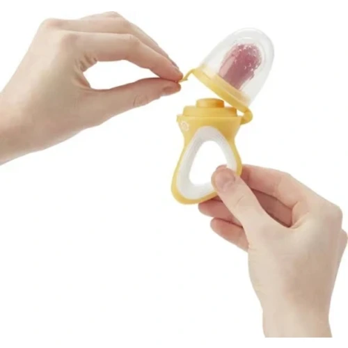 A hűtött gyümölcs a szilikon etetőhálóban a fájó íny megnyugtatására is szolgálhat.Használatával a kicsi megismerheti a természetes ízeket és állagokat. A baba nyálával felpuhítja az ételeket és kirágcsálja –akár még fogak nélkül is – a tartalmát.– Tehetsz bele a baba életkorának megfelelően nem csak zöldség- és gyümölcsdarabot, de húst vagy halat is, amit párolhatsz vagy megfőzhetsz előtte és akár melegen is adhatod a kicsinek.– Tej- és tojás mentes kifli vagy kenyérdarabot is tehetsz bele.– Hűtött, de nem fagyasztott gyümölcs vagy zöldség darabka alkalmas fogzási fájdalmak enyhítésére is.– Az etetőháló jól záródó kupakja biztosítja a higiéniát útközben is.– Biztonságos és kényelmes.– Minden használat előtt győződj meg a termék sértetlenségéről.Az etetőháló nem játszócumi, mindig felnőtt felügyelete mellett használd. Soha ne hagyd gyermeked felügyelet nélkül, ha a terméket használja.