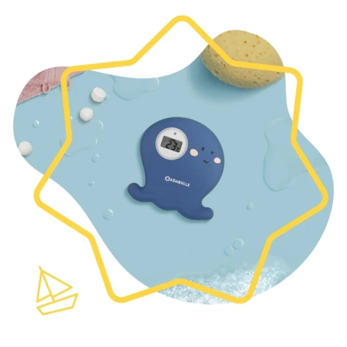 A szobákban és a fürdőkádban egyaránt használható Badabulle Octopus 2in1 digitális hőmérő ideális a kicsi biztonsága érdekében. Fontos, hogy segítsen pontosan megmérni a kicsi fürdővíz hőmérsékletét, mivel a babák bőre érzékenyebb, mint a felnőtteké, így a baba hajlamosabb a bőrirritációra vagy égési sérülésekre, ha a víz túl forró. A gyönyörû polip alakú hőmérő vizuálisan figyelmeztet, ha a víz túl forró, és a beépített LCD képernyő jelzi a víz vagy a szoba hőmérsékletét. Puha anyagból készült, lekerekített sarkokkal, így nincs veszélye annak, hogy megsérüljön a baba, ha megragadja. Automatikus kikapcsolás az akkumulátor kímélése érdekében.