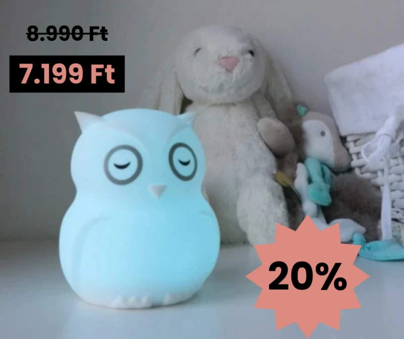 Hibü – ütésálló szilikonból készült hordozható bagoly formájú éjszakai fény,mely tökéletes társa lehet a babának éjszaka is.