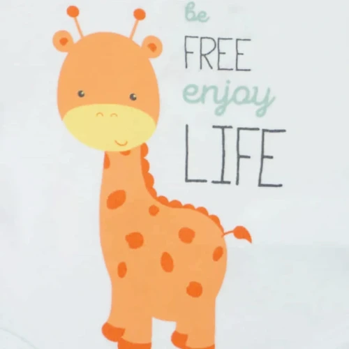 Kisbabák ruhatárának praktikus alapdarabja a body. Ez a cuki zsiráf mintával nyomott baba body minőségi, bababarát 100% pamut anyagból készült, szín- és formatartó anyagból, ami jól bírja a gyakori mosást is. Vállán patentos, így megkönnyíti a baba öltöztetését. A lába közötti patentos megoldás, pedig a gyors peluscserét teszi lehetővé.