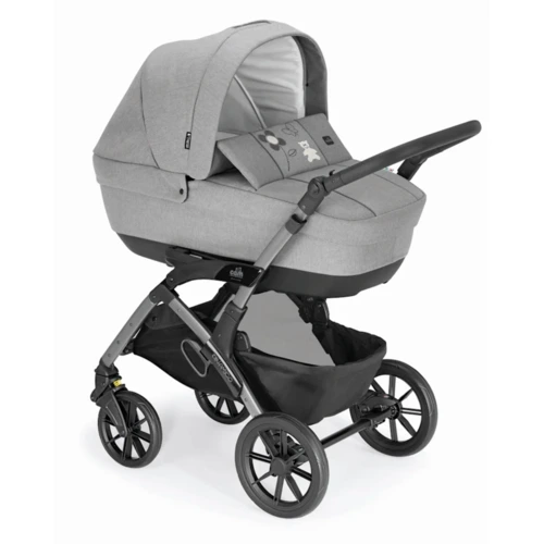 Tartalma: babakocsi váz üléssel (naptetővel), mózeskosárral (kupolával és lábtakaróval), és pelenkázótáska