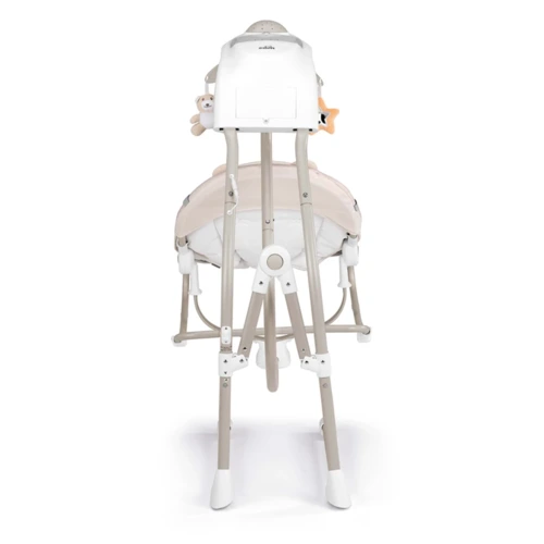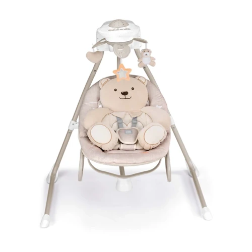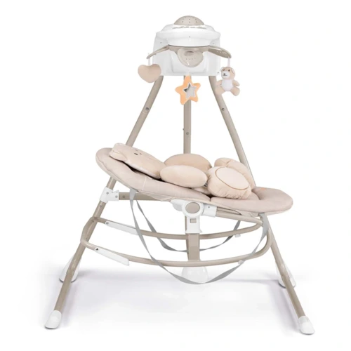 Az elektromos hinta kagylója körülöleli, ringatja, és megnyugtatja a babát. 4 sebességes hinta felfelé vetítő projektorral. 5 dallam és 3 természetes hangot játszik, de akár MP3 lejátszót is rá lehet kötni. A hangereje állítható. Automatikus kikapcsolás-időzítővel rendelkezik (10-20-30 perc).