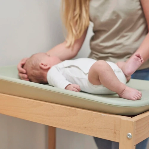 Puha, nem szövött anyagból készült és PVC-fóliával borított, amely biztonságos a baba bőrének.