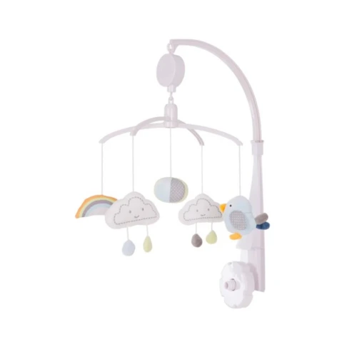 A forgóka felső részén lévő zenélő-világító Holdacska levehető és külön is rögzíthető a kiságy szélére vagy akár a babakocsi első karfájára. A Holdacska zenél és fényeket ad, akár útközben is!