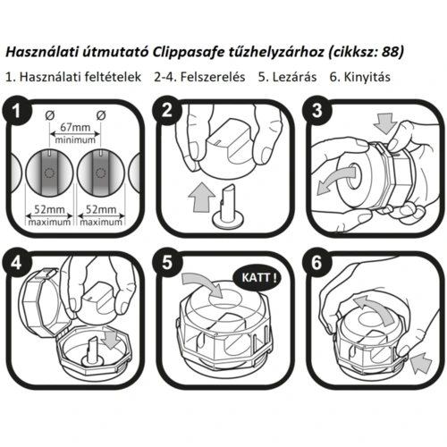Ezeket a gombvédőket olyan elektromos vagy gázüzemû készülékekhez tervezték, amelyek gombjai legfeljebb 50 mm átmérőjûek és 67 mm-nél távolabb vannak egymástól (középponttól középpontig mérve).