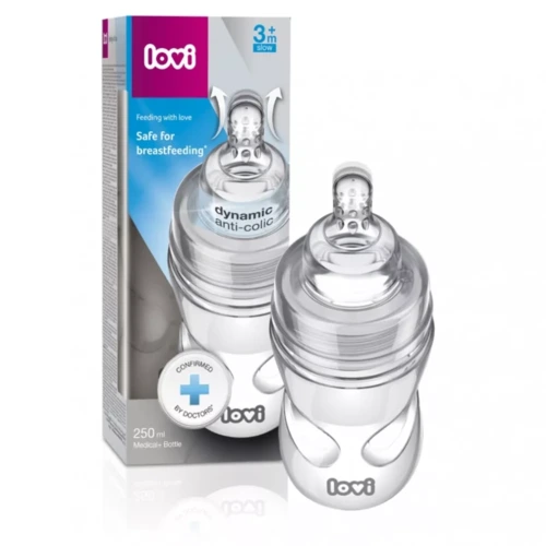 Lovi cumisüveg SuperVent Medical+ 250 ml 3 hó+ a lefejt anyatejjel való etetésre lett kifejlesztve. Biztonságos a szoptatásra, mivel nem sérti meg a gyermek szopóreflexét.