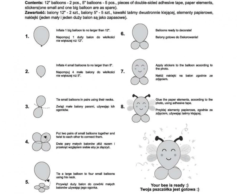 Cute Animal Bee, Méhecske léggömb, lufi szett