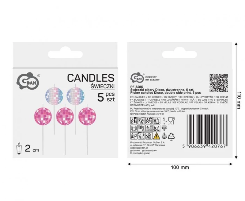 Disco gömbök tortagyertya, gyertya szett 5 db-os