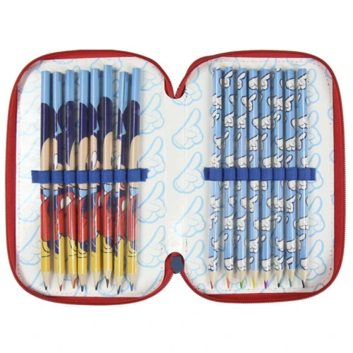 Disney Mickey tolltartó töltött 3 emeletes. Tartalma: - 17 db színes ceruza - 18 db színes filctoll - 1 db grafit ceruza - 1 db hegyező - 1 db radír - 1 db kék toll - 1 db piros toll - 1 db vonalzó - 1 db órarend - 1 db olló
