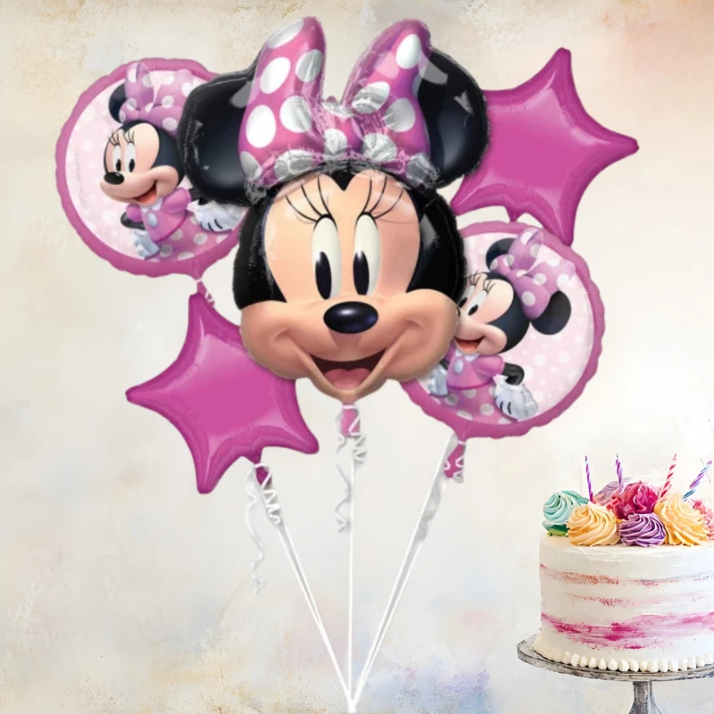 Ez a 5 db-os fólia lufi szett tökéletes választás, ha kiegészítő Disney Minnie dekorációt keresel, vagy ha már meglévő Minnie témájú dekorációdat szeretnéd még hangsúlyosabbá tenni.