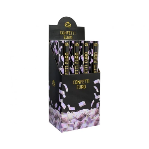 A henger alját a nyíl irányában elforgatva, konfettiket lövell ki.