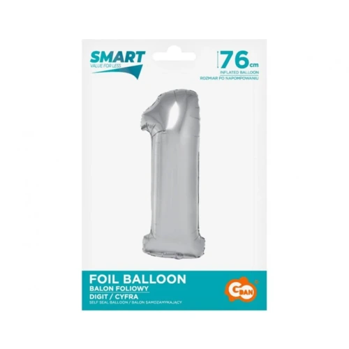Ezüst 1-es Silver szám fólia lufi 76 cm