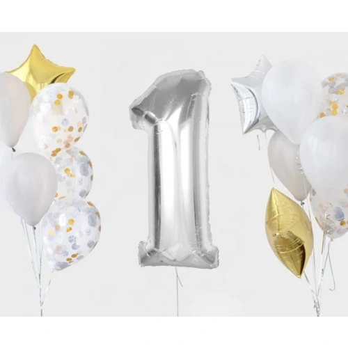 Ezüst 1-es Silver szám fólia lufi 92 cm