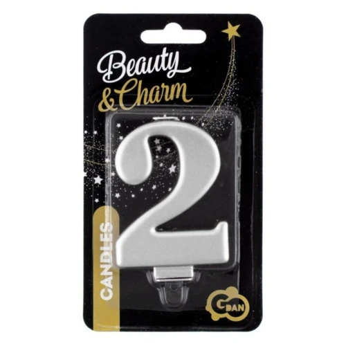 Ezüst 2-es Metallic számgyertya, tortagyertya