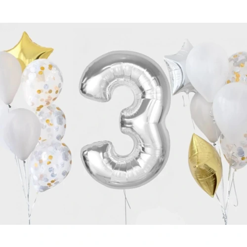 Ezüst 3-as Silver szám fólia lufi 92 cm