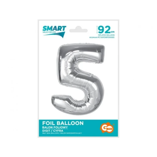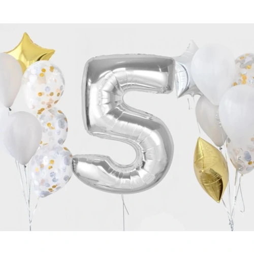Ezüst 5-ös Silver szám fólia lufi 92 cm