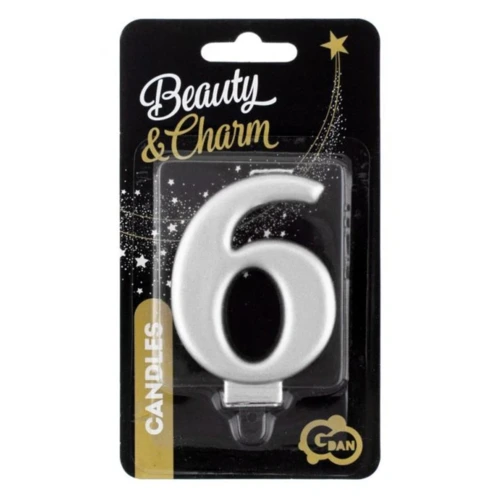 Ezüst 6-os Metallic számgyertya, tortagyertya