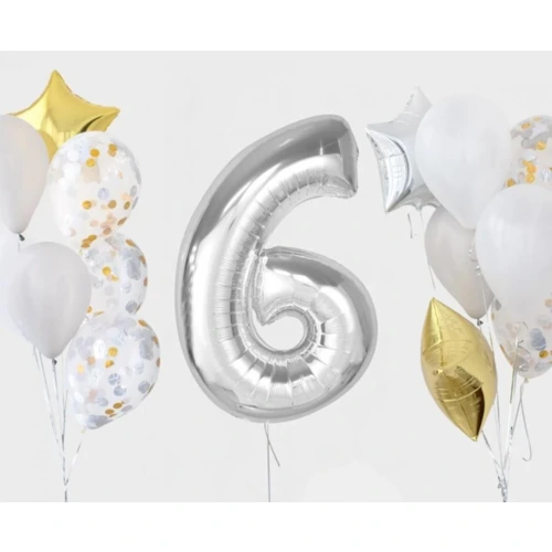 Ezüst 6-os szám fólia lufi 92 cm